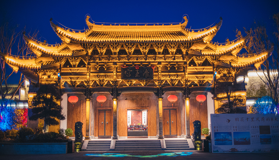 淮王宫,建筑面积约6000平方米,以明代王府为蓝本,沿袭200余载历史,继承八代九王的皇室荣光。建筑整体精雕细琢,气势恢宏。内部甄选了众多江南知名匠人的石雕、木雕之作,融入人物、山水、花卉、瑞兽等图案,每个细节都表现出厚重的文化底蕴,完美复刻明代皇家建筑风貌。必将成为整个古镇最能代表鄱邑文化特色的建筑瑰宝。一览名胜之余,静观千年历史底蕴,书写一段文化共鸣。