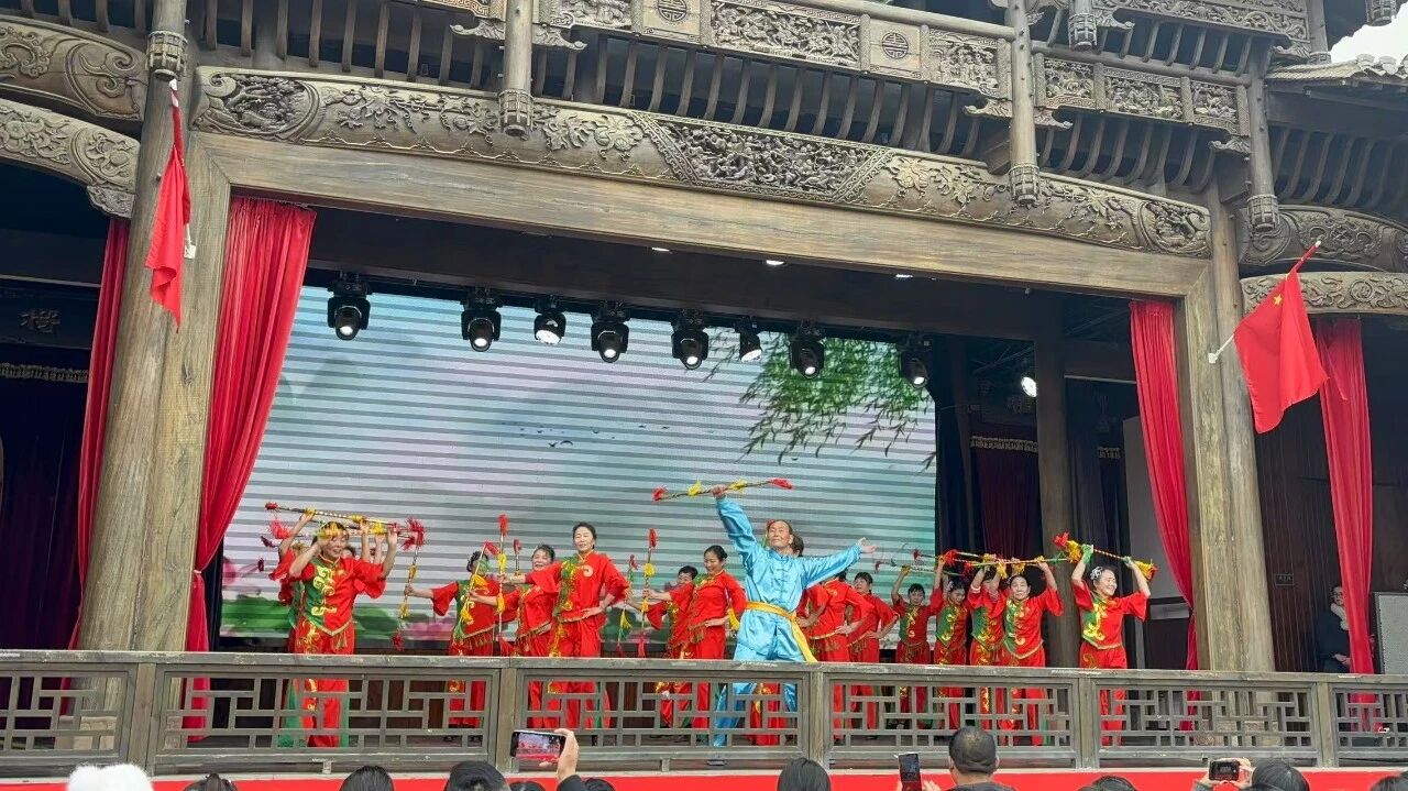 演出内容:又称霸王鞭或打连厢。是一种传统民俗舞蹈。莲湘用一米长的细竹筒做成,每节部分雕空、嵌以铁钱。打莲湘可由一人手拍竹板为唱,三四人手摇莲湘和之。