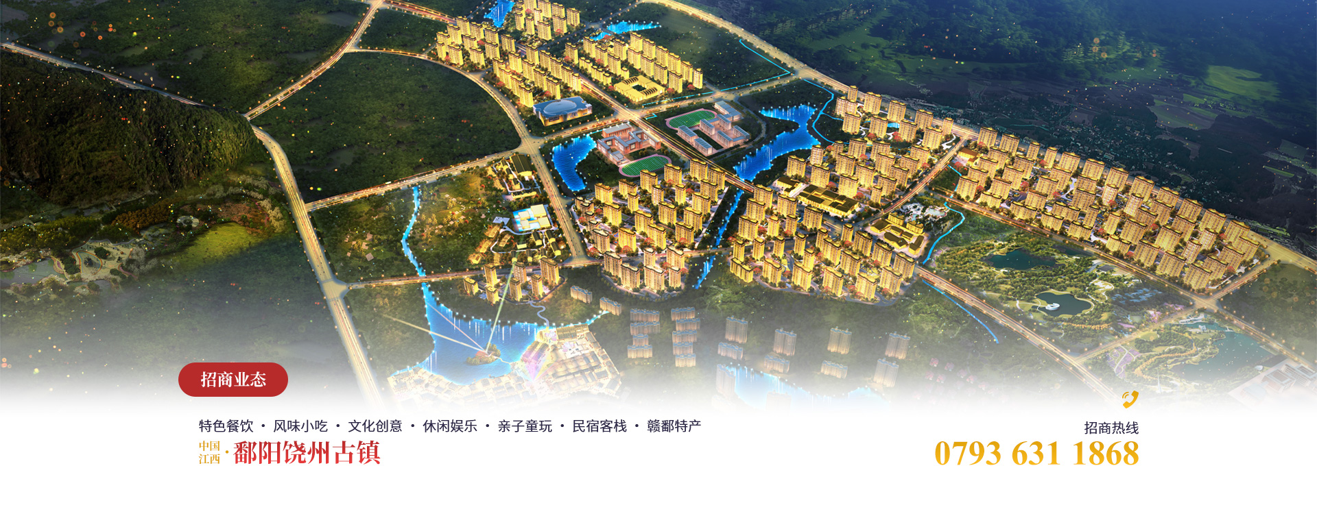 饶州古镇建设用地88亩,总建筑面积约4万平方米,以赣鄱文化为精髓,